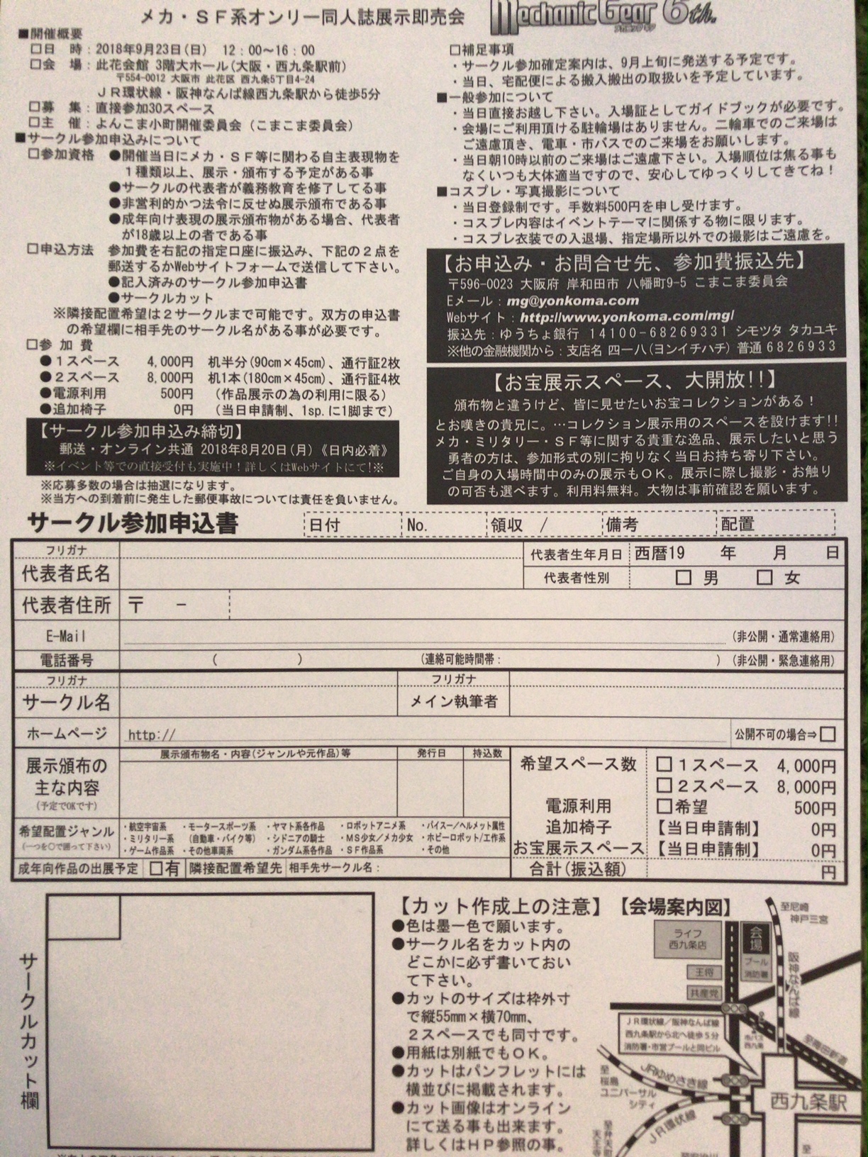 西九条 此花会館(大阪)にて、メカ・SF作品系総合同人誌展示即売会「Mechanic Gear 6th」が開催。